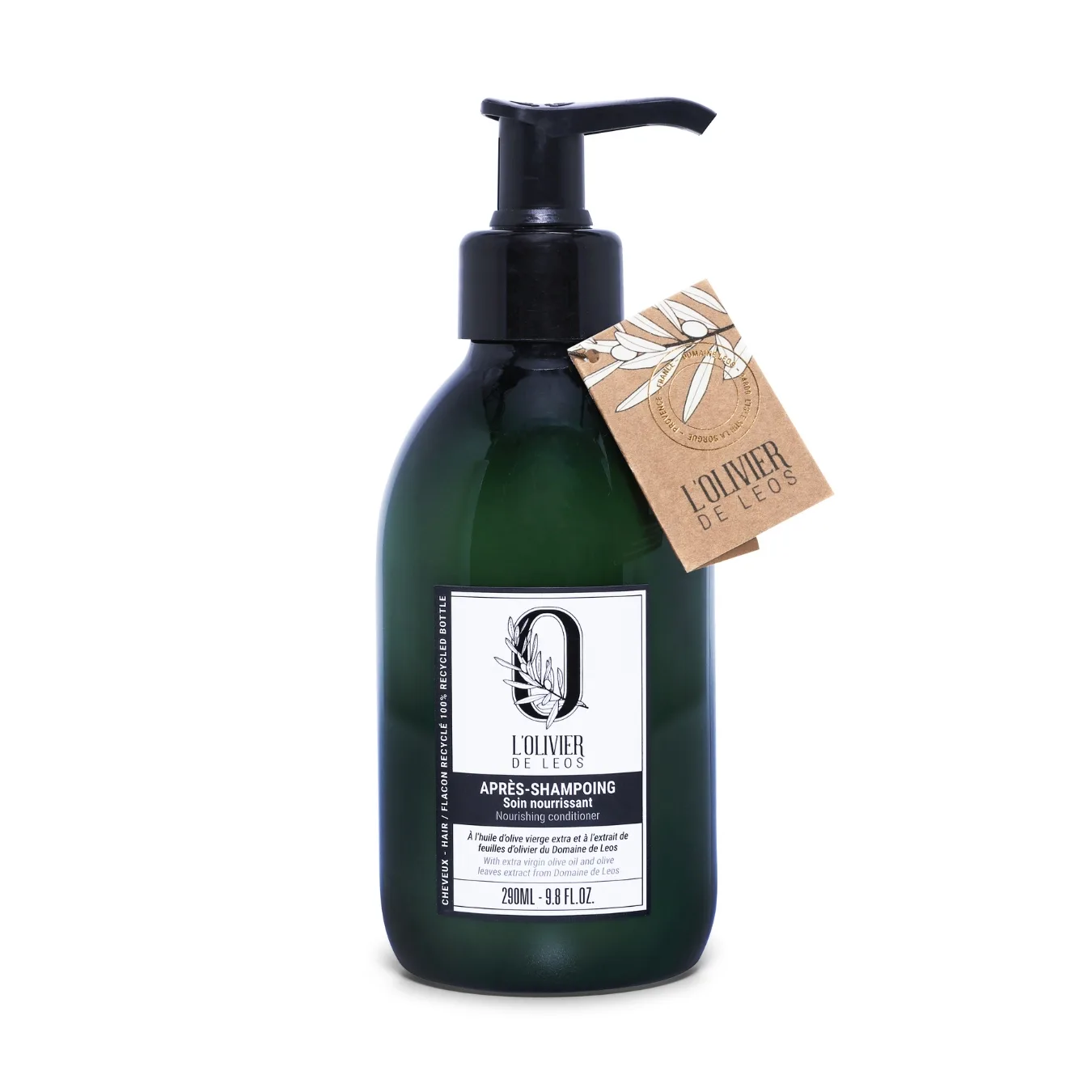 L’après-shampoing soin nourrissant enrichi en huile d’olive vierge extra et extrait de feuilles d’olivier du Domaine de Leos est particulièrement adapté pour les cheveux normaux à secs, mais il peut aussi être utilisé pour les cheveux très secs et les cuirs chevelus sensibles.