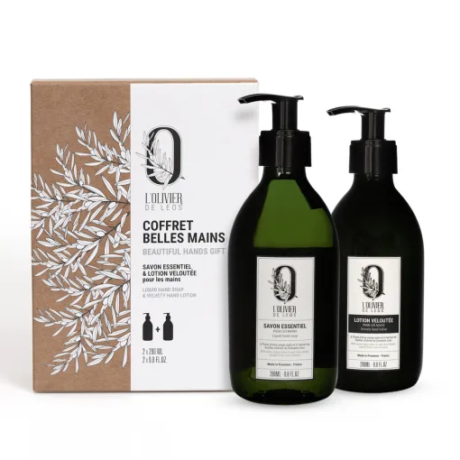 Le cadeau idéal : un duo de soins pour les mains L’Olivier de Leos (savon et lotion hydratante) réuni dans un élégant coffret pour chouchouter la peau au quotidien.