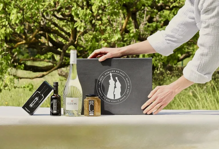 Un coffret gourmand d’exception regroupant trois produits symboles de la marque Leos : un vin blanc bio Leos Cuvée Augusta, une huile d’olive H de Leos L’Originelle, 1ère huile lancée par le Domaine de Leos, et un confit de thym sauvage Leos devenu aujourd’hui un produit emblématique dans notre gamme. Comme tous les coffrets-cadeaux Leos, « FRAÎCHEUR & PLAISIRS » porte l’esprit d’excellence, l’authenticité, le caractère et les engagements des produits Leos. Vin blanc Leos bio : combinant des cépages emblématiques de notre région, il révèle un profil solaire et raffiné : à la fois généreux et aérien. Vin blanc Leos bio : nez délicat, bouquet intense de fleurs blanches relevées par des notes d’agrumes mûrs, finale nette, persistante et d’une grande élégance, héritage d’un élevage soigné en fût. Vin blanc Leos bio : avec son intensité aromatique, sa richesse et sa fraîcheur, c’est un vin de gastronomie qui sublime aussi bien l’apéritif qu’un repas d’exception. Quelle est l’origine du nom Augusta ? Qu’est-ce qu’une huile d’olive premium ? Confit de thym vs gelée de thym : y a-t-il une différence ? INFORMATIONS TECHNIQUES Présentation : calage de trois produits Leos présentés dans un coffret-cadeau premium en carton renforcé avec fermeture aimantée. Présentation de l’huile H de Leos L’Originelle en étui-cadeau.