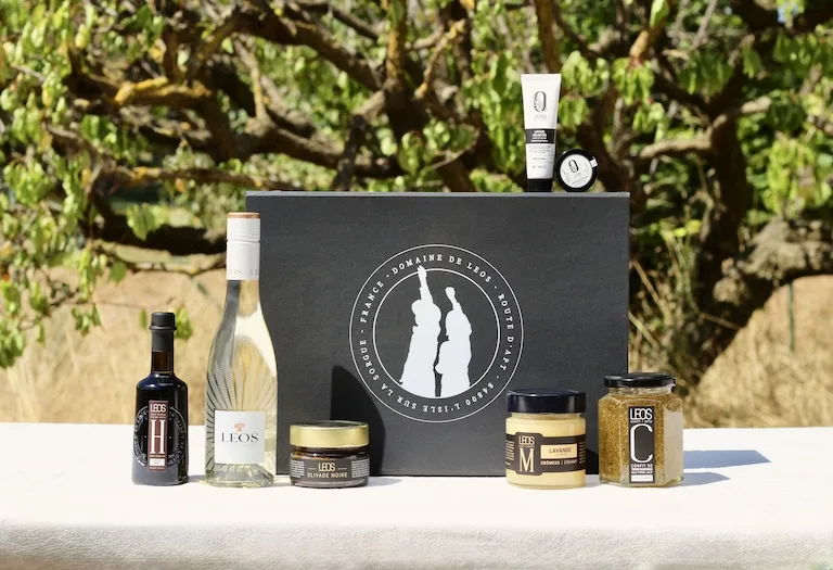 Composition : 1 vin blanc bio Leos cuvée Augusta (37,5cl / 375 ml) – 1 huile H de Leos Fruité mûr (10 cl / 100 ml) – 1 olivade noire Leos (100g) – 1 confit de thym sauvage (250g) – 1 lotion crème main (25ml) et 1 baume pour les lèvres L’Olivier de Leos.
