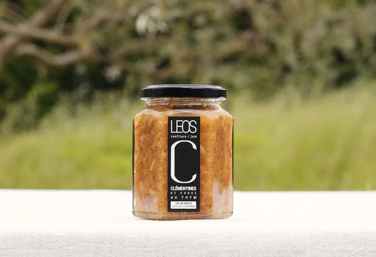 Une confiture d’exception mêlant Clémentines de Corse et thym sauvage : une recette de caractère portée par une fraîcheur aromatique emblématique du Domaine de Leos.