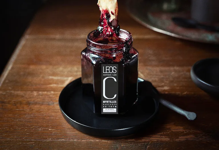Une confiture d’exception ou la douceur fruitée de la myrtille rencontre la fraîcheur aromatique du thym sauvage, signature du Domaine de Leos.